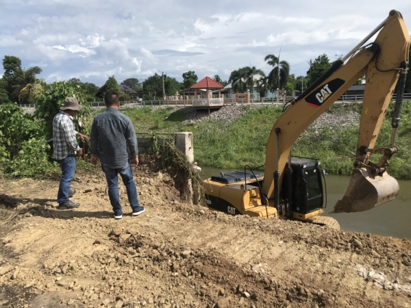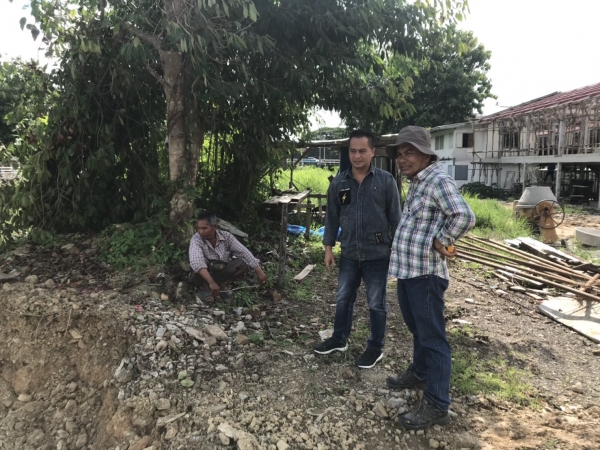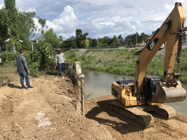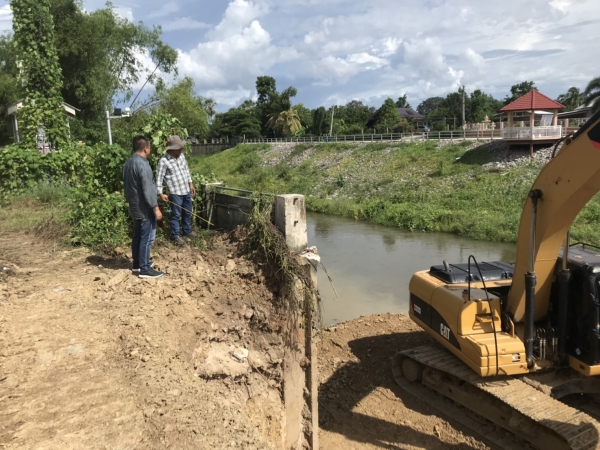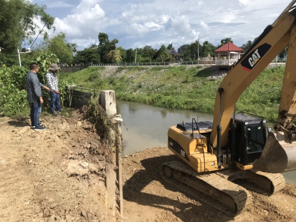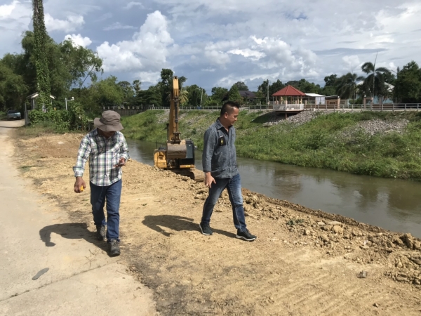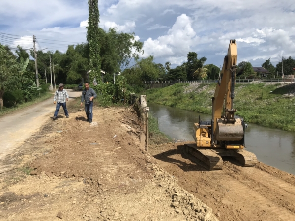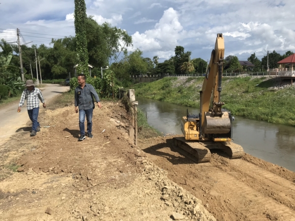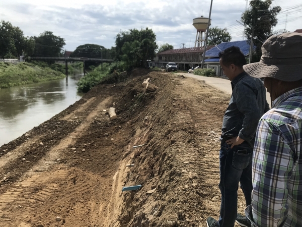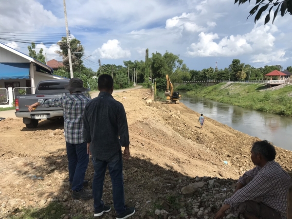 นายกเทศมนตรีตำบลบ้านลาด ติดตามความคืบหน้าการก่อสร้างคันกั้นน้ำบริเวณด้านหลังที่ว่าการอำเภอบ้านลาด อำเภอบ้านลาด จังหวัดเพชรบุรี