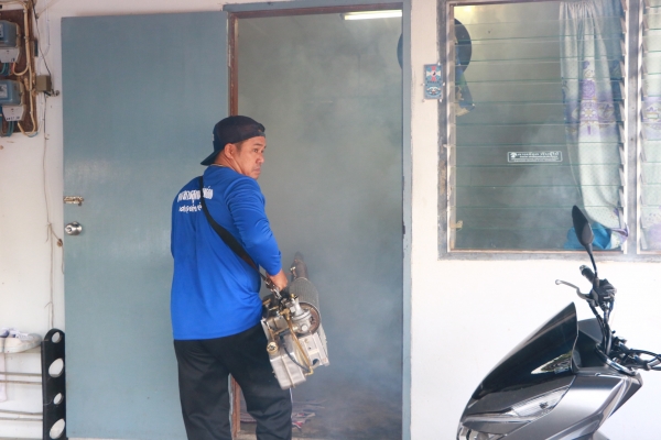 ตรวจดูการพ่นหมอกควัน เนื่องจากพบผู้ป่วยไข้เลือดออกในเขตเทศบาลตำบลบ้านลาด