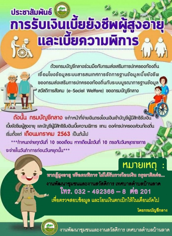 ...กรณีผู้ด้อยโอกาส เทศบาลตำบลบ้านลาด ยังเป็นผู้โอนเงินให้เช่นเดิมค่ะ