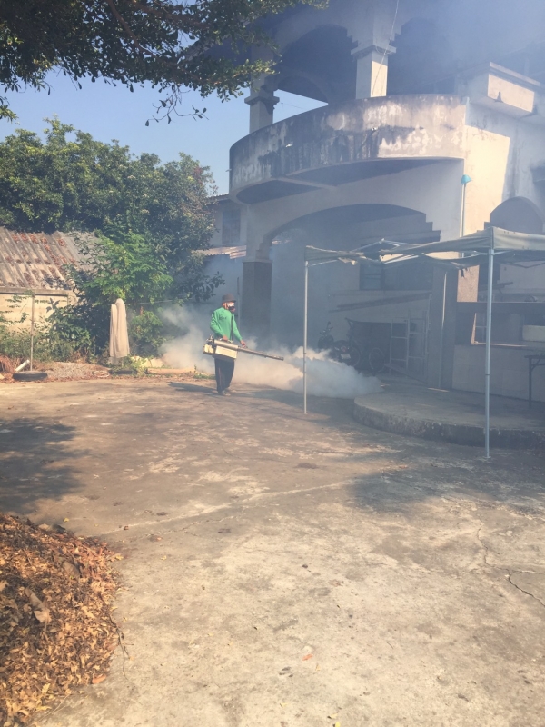 กองสาธารณสุขและสิ่งแวดล้อม ออกฉีดพ่นหมอกควันป้องกันยุงลาย บริเวณหมู่ 1 - 2 ตำบลบ้านลาด