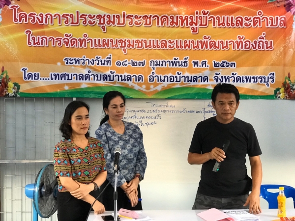 เทศบาลตำบลบ้านลาด นำโดย จ่าอากาศเอกอภิชาติ แก้วโกศล นายกเทศมนตรีตำบลบ้านลาด รองนายกเทศมนตรี สมาชิกสภาเทศบาล พนักงาน ลูกจ้าง และพนักงานจ้าง สังกัดเทศบาลตำบลบ้านลาด จัดโครงการประชุมประชาคมหมู่บ้านและตำบลในการจัดทำแผนชุมชนและแผนพัฒนาท้องถิ่น ประจำปี 2563 (หมู่ที่ 2 ตำบลบ้านลาด) เพื่อรับฟังปัญหา ความเดือดร้อน และความต้องการของประชาชน โดยจะนำปัญหา ข้อเสนอต่าง ๆ มาบรรจุไว้ในแผนพัฒนาท้องถิ่น (พ.ศ.2561 - 2565) ต่อไป