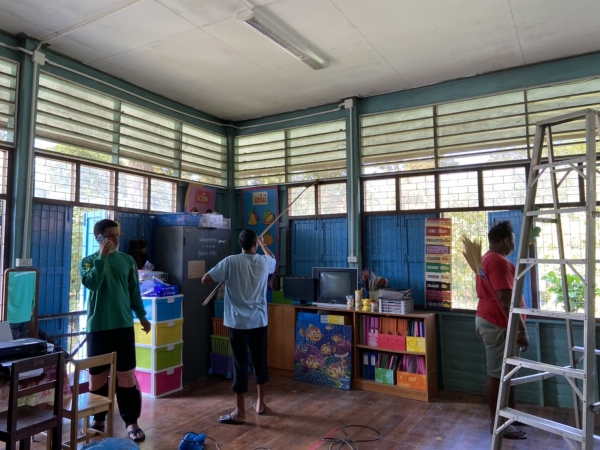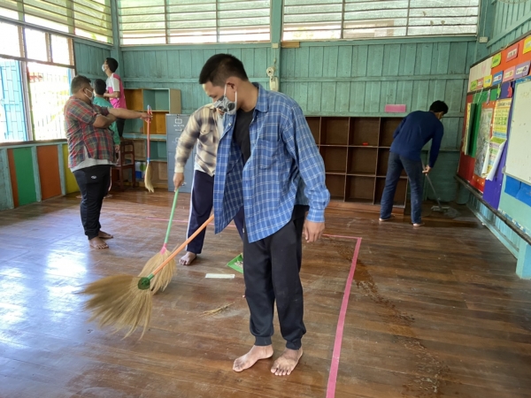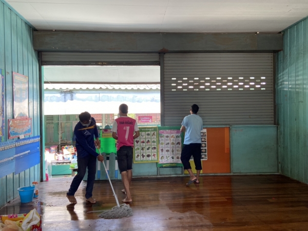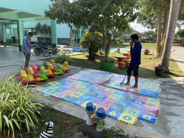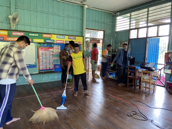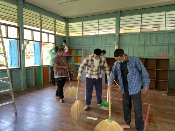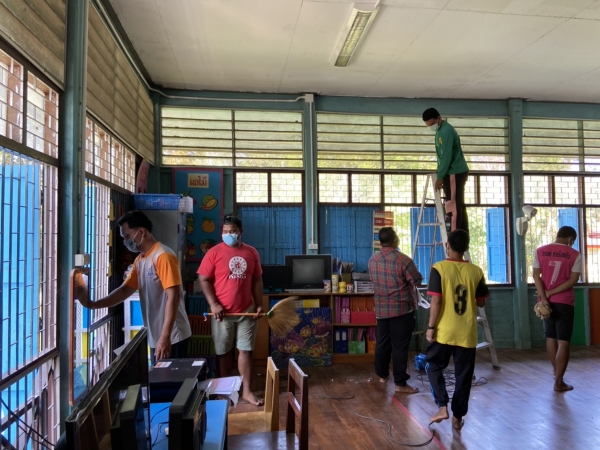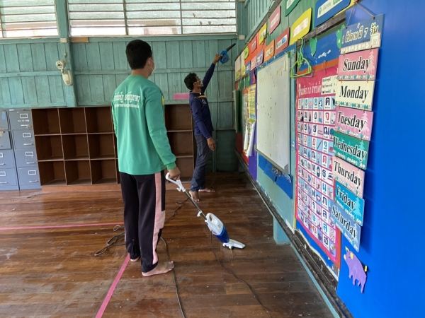 บริเวณโดยรอบ วัสดุและอุปกรณ์ สื่อการเรียนการสอนทุกชิ้น เพื่อป้องกันการระบาดของโรคติดเชื้อไวรัสโคโรนา 2019 (COVID-19)