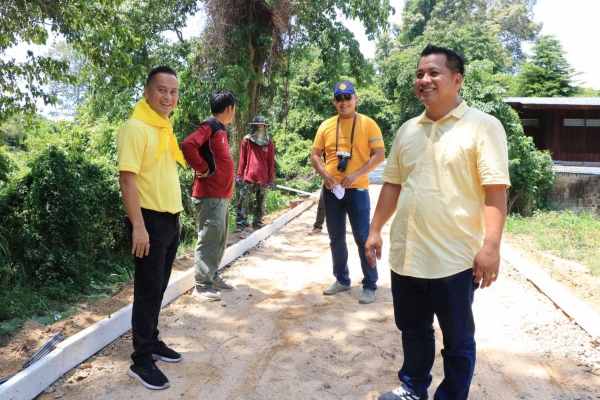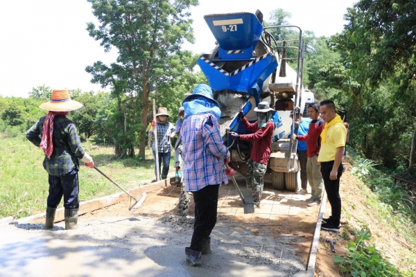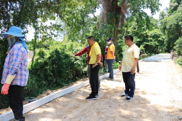 ตรวจดูการเทพื้นถนน คสล. บริเวณหมู่ที่ ๘ ตำบลบ้านลาด
