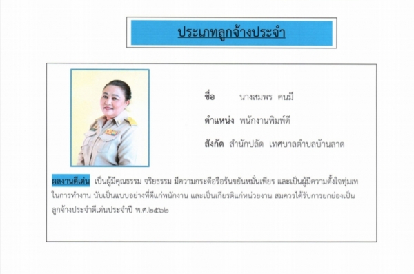 ประเภทลูกจ้างประจำ นางสมพร คนมี