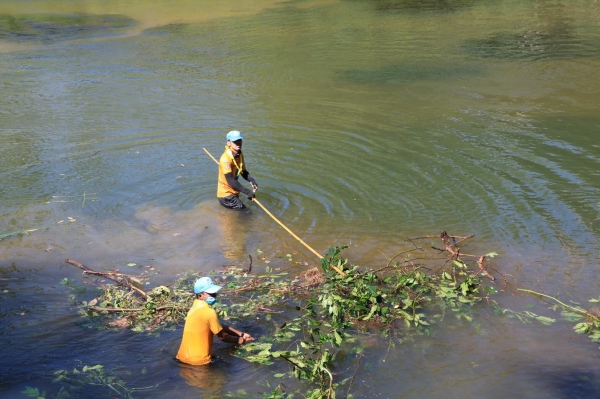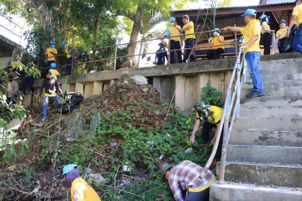 นายกเทศมนตรี คณะผู้บริหาร สมาชิกสภา พนักงานและลูกจ้างเทศบาลตำบลบ้านลาด ร่วมกันพัฒนาทำความสะอาดบริเวณทางลงแม่น้ำหลังอำเภอบ้านลาด