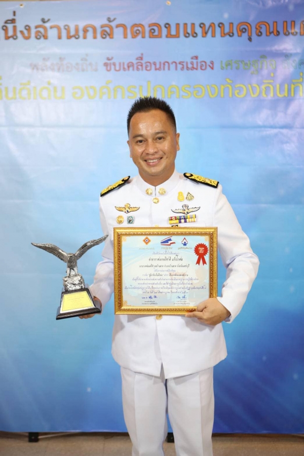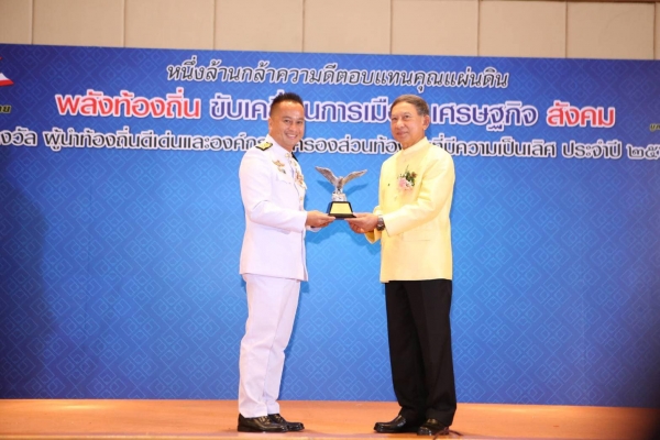 นายกเทศมนตรีตำบลบ้านลาด เข้ารับรางวัลผู้นำท้องถิ่นดีเด่น ประจำปี 2563 จากพลอาการเอกประจิน จั่นตอง อดีตรองนายกรัฐมนตรี