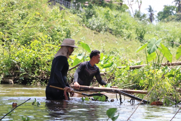 สำรวจผักตบชวาตามโครงการกำจัดผักตบชวาและวัชพืชที่กีดขวางทางน้ำ