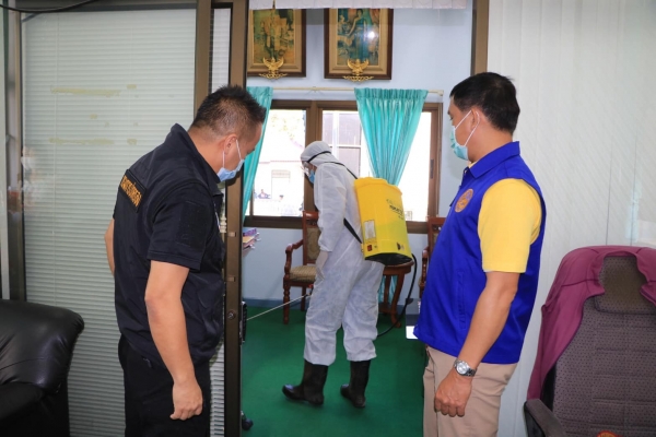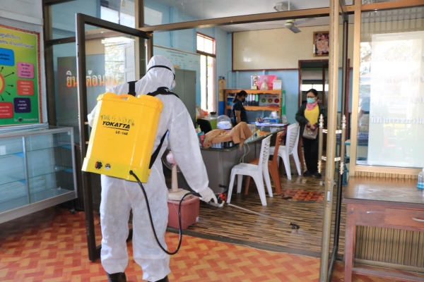 ฉีดพ่นยาฆ่าเชื้อบริเวณที่มีผู้คนแออัดและเป็นพื้นที่จุดเสี่ยง