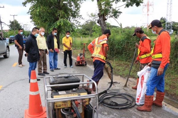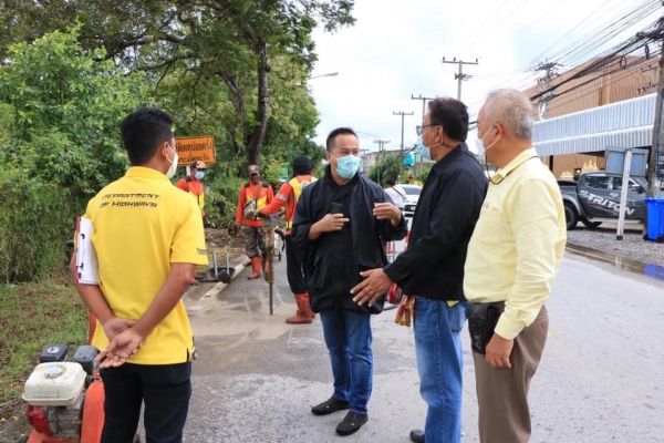 นายกเทศมนตรีตำบลบ้านลาด ลงพื้นที่ตรวจดูการเตรียมความพร้อมในโครงการขยายถนนของกรมทางหลวง ในเขตเทศบาลตำบลบ้านลาด