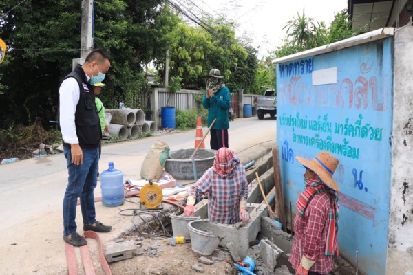 ตรวจการทำท่อระบายน้ำ บริเวณหมู่ที่ 2 ตำบลบ้านลาด