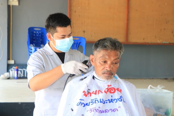 นายกเทศมนตรีตำบลบ้านลาด ออกหน่วยบริการตัดผมฟรี ให้กับประชาชนบริเวณหมู่ที่ ๗ และหมู่ที่ ๘ ตำบลบ้านลาด เพื่อเป็นการลดรายจ่ายภายในครอบครัวของประชาชน