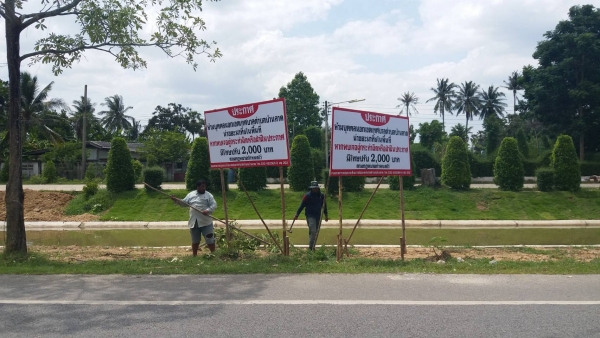 กองสาธารณสุขและสิ่งแวดล้อม เทศบาลตำบลบ้านลาด นำป้ายประกาศ ห้ามบุคคลนอกเขตเทศบาลตำบลบ้านลาด นำขยะมาทิ้งในพื้นที่ ไปติดตั้งในพื้นที่ตำบลบ้านลาด