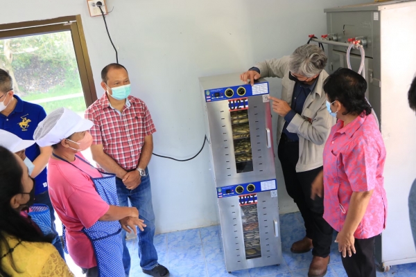 ตำบลบ้านลาด ได้รับการคัดเลือกจากมหาวิทยาลัยราชภัฏหมู่บ้านจอมบึง เข้าร่วมโครงการขับเคลื่อนเศรษฐกิจและสังคมฐานรากหลังโควิดด้วยเศรษฐกิจ BCG (U2T for BCG) เพื่อเป็นต้นแบบในการยกระดับเศรษฐกิจชุมชน ในเรื่องของการอบแห้งโดยเครื่องอบแห้งลมร้อนอบผลิตผลทางการเกษตร เช่น พืช ผัก ผลไม้ ช่วยลดระยะเวลาในการอบเมื่อเทียบกับการตากแดดโดยธรรมชาติ เพื่อถนอมอาหาร โดยทางมหาวิทยาลัยราชภัฏหมู่บ้านจอมบึง ได้ทำการพัฒนาตู้และสร้างตู้อบประหยัดพลังงานต้นแบบสำหรับครัวเรือน ทำงานหมุนเวียนลมร้อนโดยใช้ฮีตเตอร์ไฟฟ้าสร้างลมร้อนหมุนเวียนเข้าสู่ห้องอบส่งผ่านรังสีความร้อนสู่ผลิตภัณฑ์ทางการเกษตรที่ต้องการอบที่เรียงตัวอยู่บนถาด สามารถกระจายความร้อนเฉลี่ยได้ทั่วถึงทุกชิ้นของผลิตภัณฑ์ และตู้อบสามารถควบคุมอุณหภูมิลมร้อน ด้วยการปรับตั้งให้เหมาะสมกับขนาดและผลิตภัณฑ์ที่ต้องการอบ