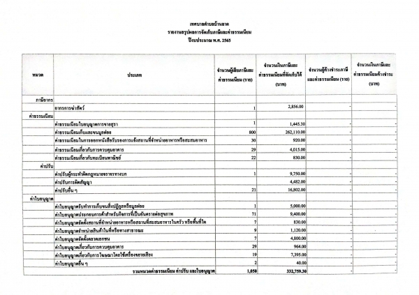 เทศบาลตำบลบ้านลาดขอรายงานสรุปผลการจัดเก็บภาษีและค่าธรรมเนียม ประจำปีงบประมาณ พ.ศ. 2565 รายละเอียดตามเอกสารแนบท้ายนี้