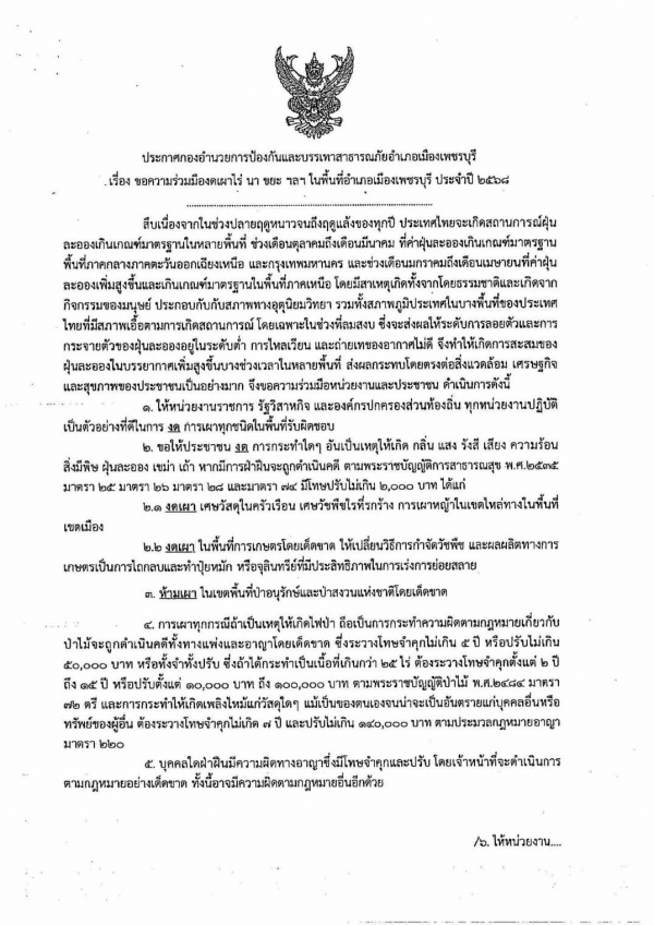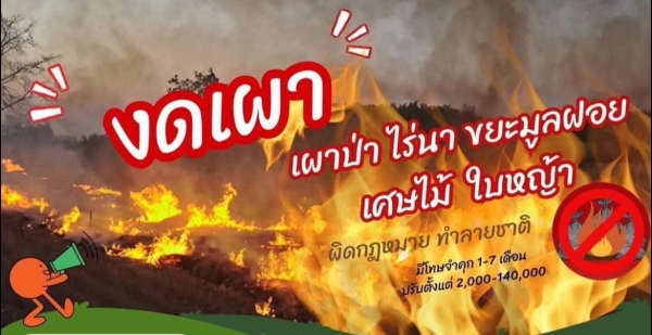 ขอความร่วมมือพี่น้องชาวจังหวัดเพชรบุรี งดเผา เผาป่า ขยะมูลฝอย ตอซังข้าว ใบไม้ เศษไม้ และพื้นที่การเกษตร
