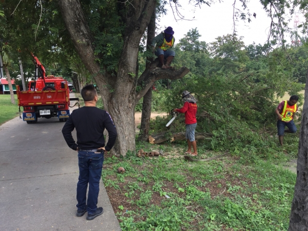 เทศบาลตำบลบ้านลาด ออกให้บริการ ตัดหญ้า ตัดแต่งกิ่งไม้ ซ่อมแซมไฟฟ้าสาธารณะ ทำความสะอาดสวนสาธารณะ