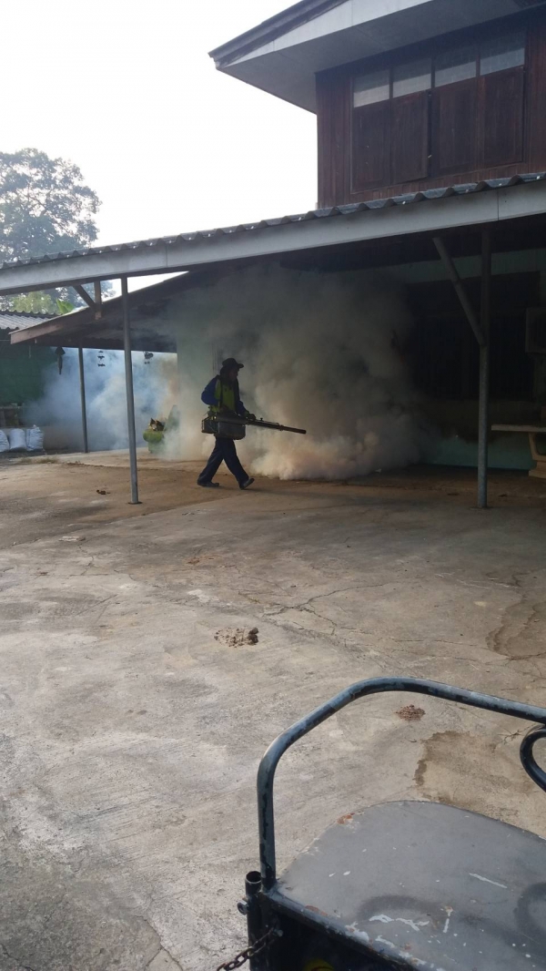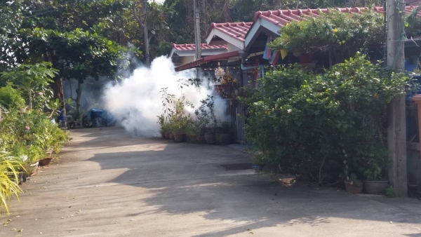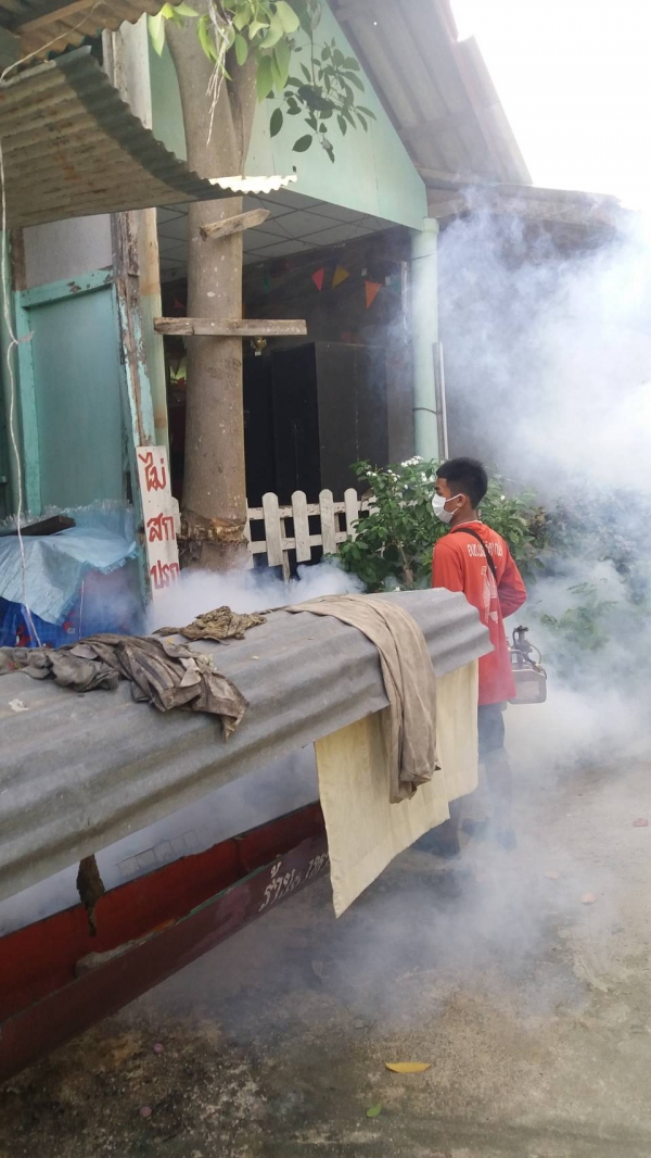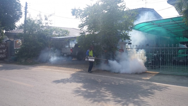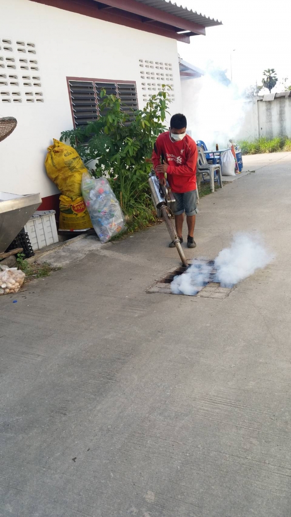 กองสาธารณสุขและสิ่งแวดล้อม เทศบาลตำบลบ้านลาด ออกให้บริการฉีดพ่นหมอกควันเพื่อป้องกันโรคไข้เลือดออก