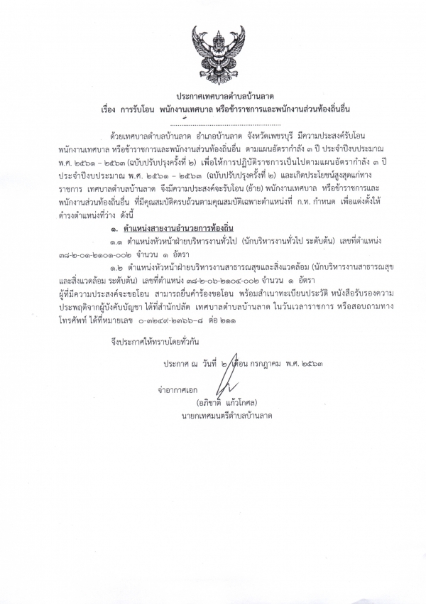 ประกาศรับโอนพนักงานเทศบาล ข้าราชการ และพนักงานส่วนท้องถิ่นอื่น