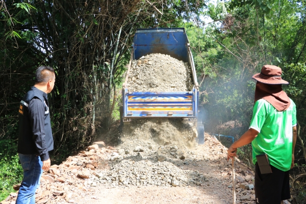 ตรวจสอบการทำพนังกั้นน้ำเพื่อป้องกันน้ำท่วม บริเวณหมู่ที่ ๘ ตำบลบ้านลาด