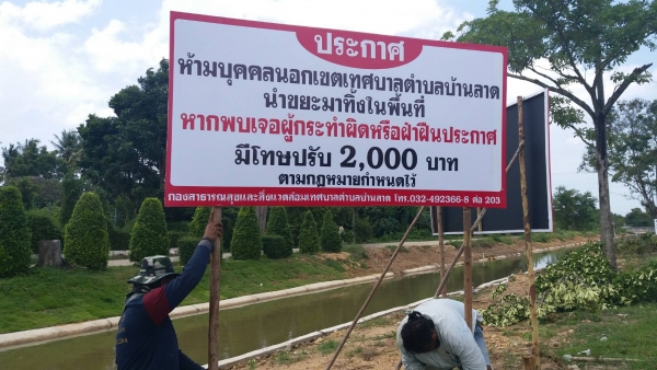 ติดตั้งป้าย ห้ามบุคคลนอกเขตเทศบาลนำขยะมาทิ้งในพื้นที่